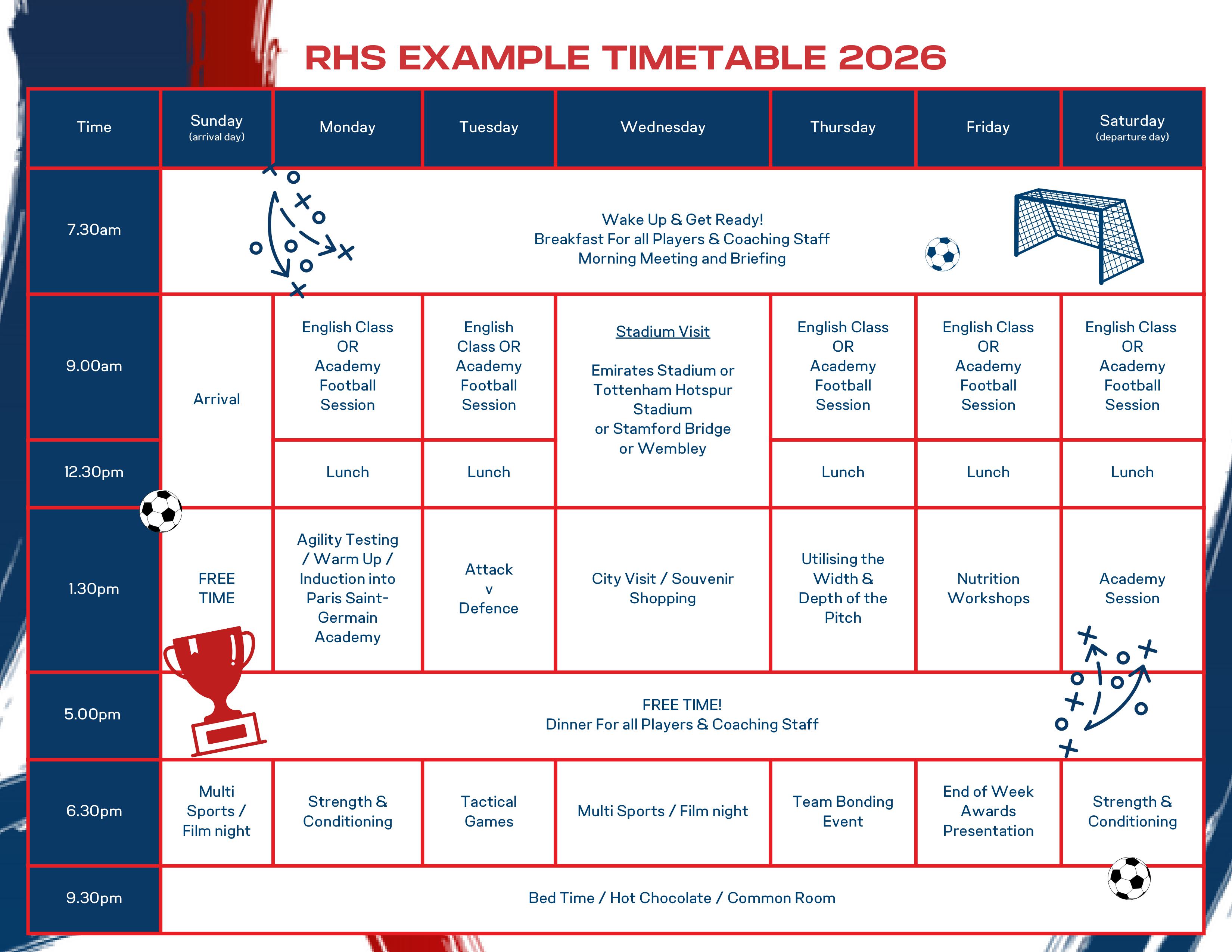 Trenéři jsou přímo vyškolení v Paris Saint-Germain v Paříži a mají asistenty kvalifikované FA. Hráči obdrží komplet vybavení PSG Academy England plus certifikát a závěrečnou zprávu.
