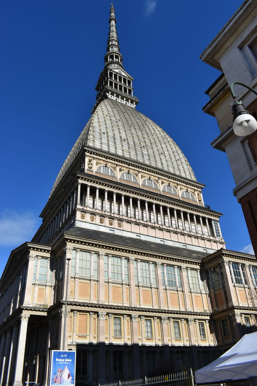 Nejznámější stavbou Turína je Mole Antonelliana vysoká 167,5 metrů. Stavba původně vznikla jako synagoga, dnes je v jejích prostorách Národní muzeum kinematografie, jedno z nejzajímavějších muzeí svého druhu na světě. Pro turisty je lákadlem i skleněný výtah, který vás vyveze až na vyhlídku ve věži, odkud je úchvatný výhled na celé město a Alpy v pozadí. Doporučujeme rezervovat vstupenku online, jinak budete čekat několik hodin (kapacita výtahu je omezená a po schodech vyjít nejde – v horní části věže už místo jen na výtah).